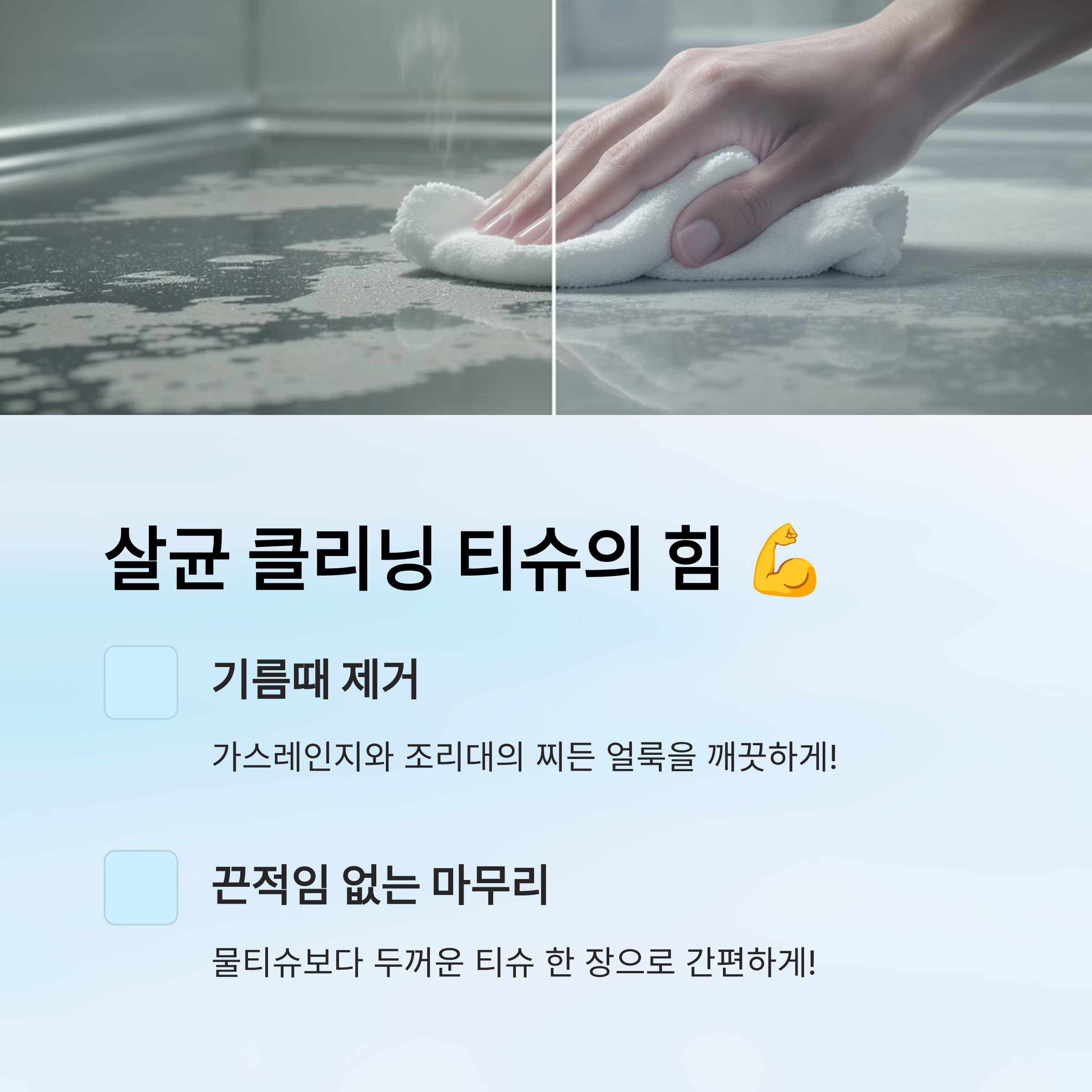 🚀 3. 한 장으로 해결! 살균 클리닝 티슈