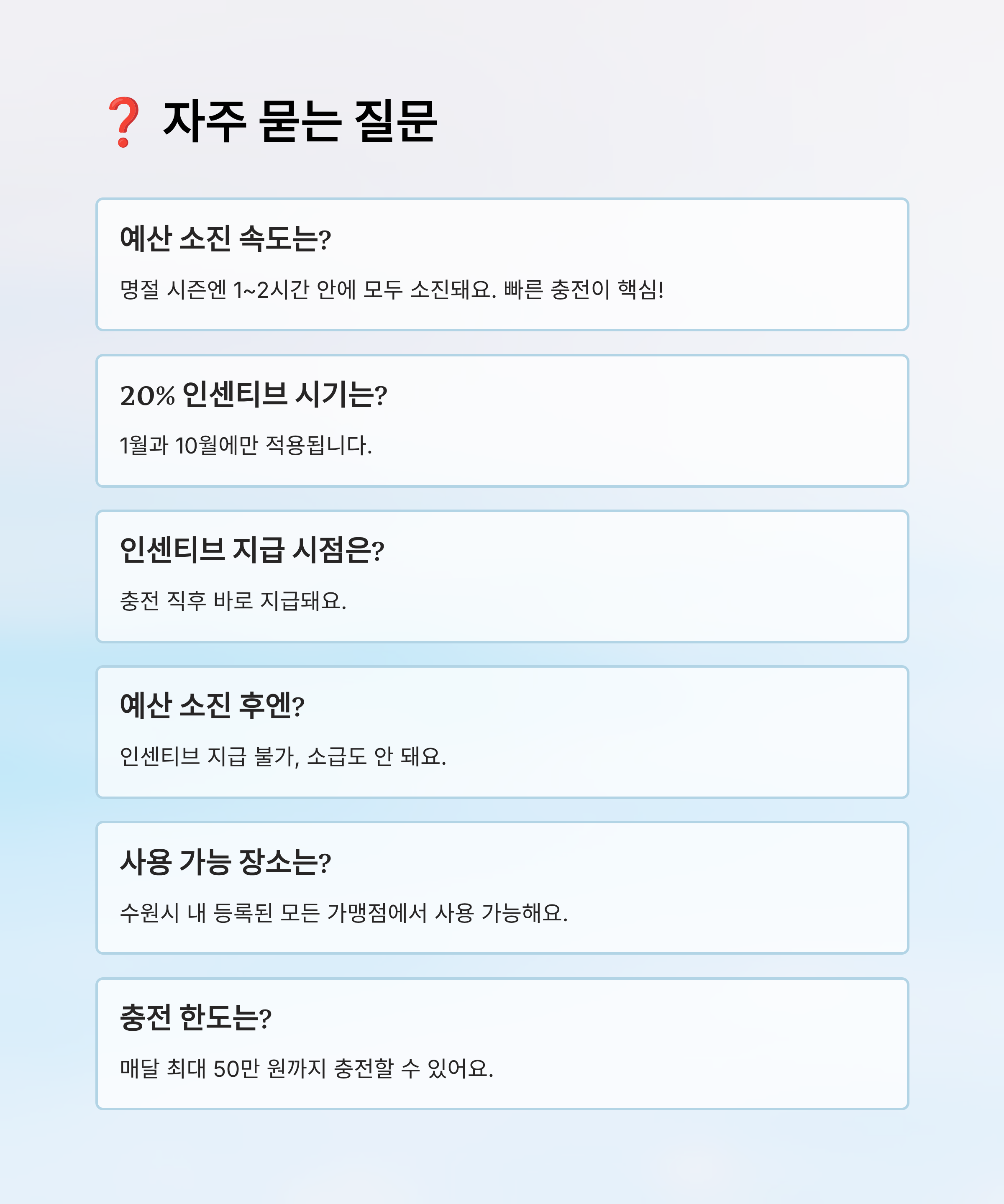 🛡 면책 조항: 본 콘텐츠는 2025년 10월 기준 공개된 정보를 기반으로 작성되었으며, 실제 정책 및 예산은 수원시와 경기지역화폐 운영사에 따라 변경될 수 있어요. 항상 공식 홈페이지 및 앱을 통해 최신 정보를 확인해 주세요.