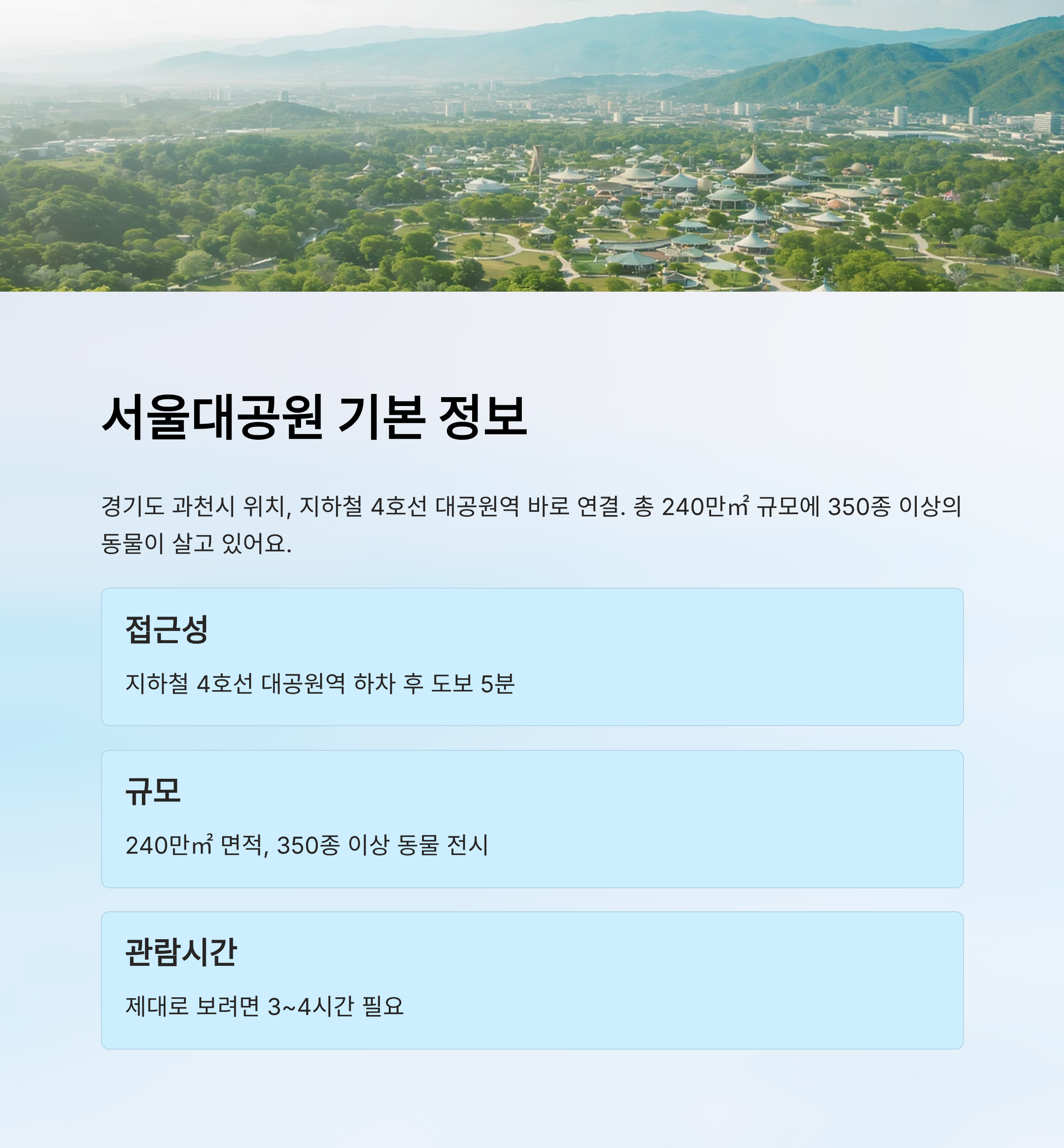 ⚠ 본 글은 2025년 10월 기준 실제 방문 및 조사한 내용을 기반으로 작성되었으며, 운영 정책이나 요금은 변동될 수 있어요. 방문 전 서울대공원 공식 홈페이지나 현장 안내를 꼭 확인해주세요.