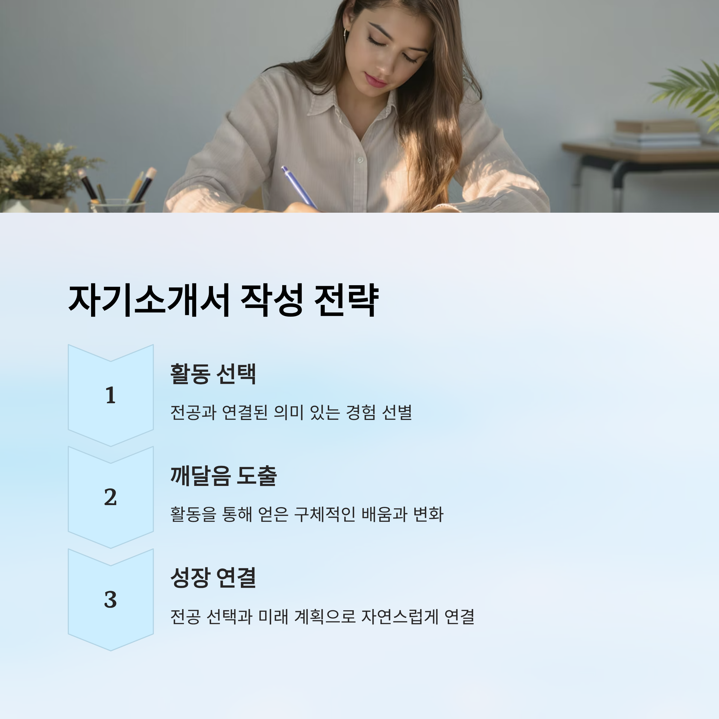 즉, 6등급 학생이라도 학생부를 통해 “나는 성적은 부족하지만, 이 전공에 대한 열정과 꾸준한 노력이 있다”라는 메시지를 줄 수 있다면, 합격 가능성은 충분히 존재해요. 이제 이 학생부를 자기소개서와 면접에서 어떻게 풀어내야 할지 살펴볼 차례예요.