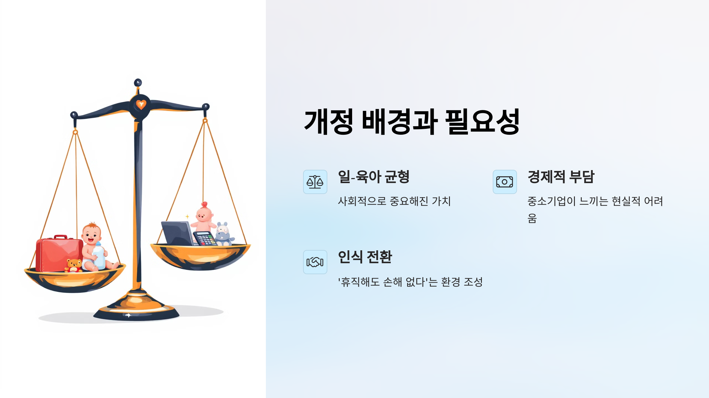 육아휴직이 법적으로 보장된 권리임에도 불구하고, 고용주는 눈치를 보게 되고 근로자는 마음 편히 신청하지 못했어요. 이런 구조 자체가 개선이 필요했던 거죠.