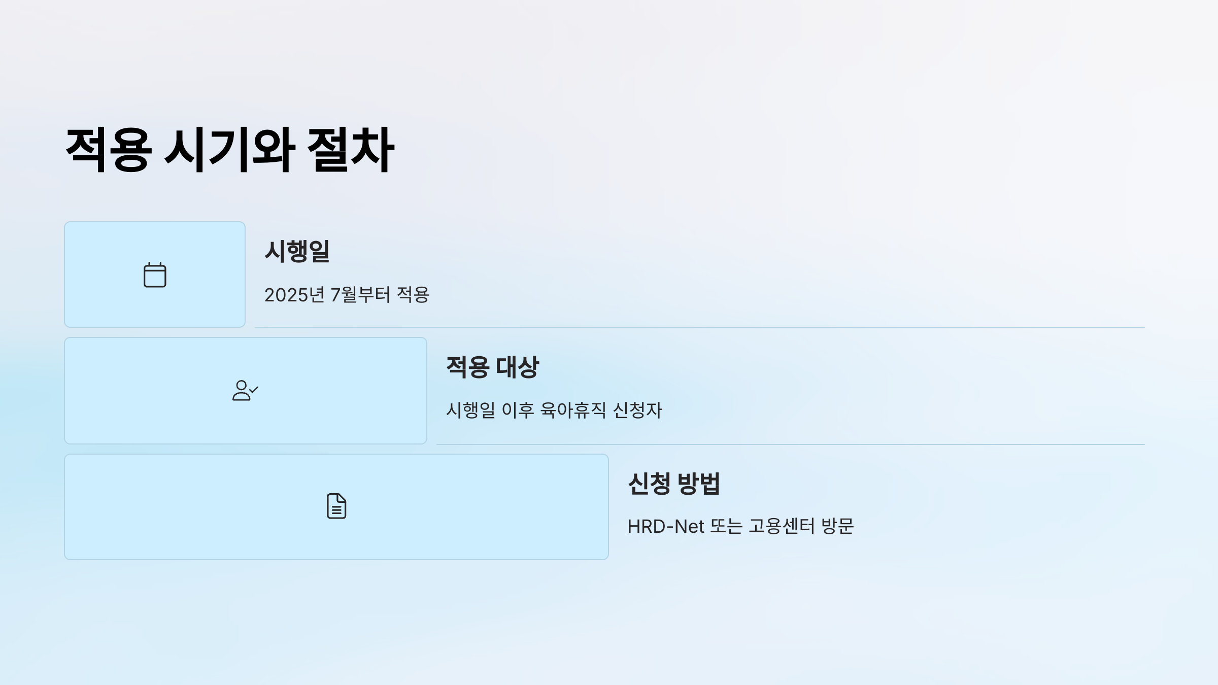 | 적용 대상 | 2025년 7월 이후 육아휴직 신청자 |