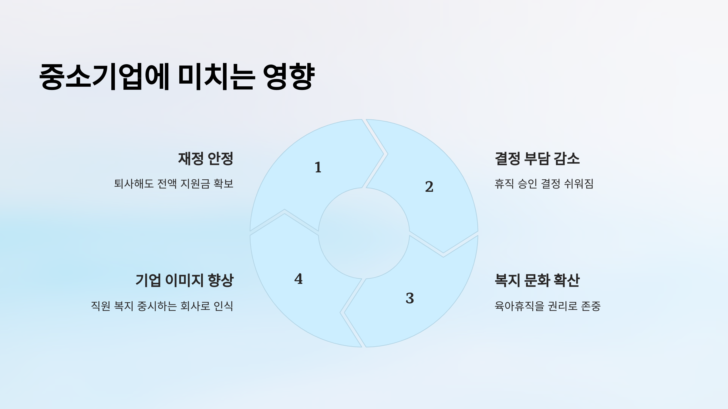 육아휴직 제도 개정은 단순히 제도 개선에 그치지 않아요. 중소기업 입장에서는 인력 운용, 재정적 부담, 고용 전략 등 전반에 큰 영향을 미치게 돼요.