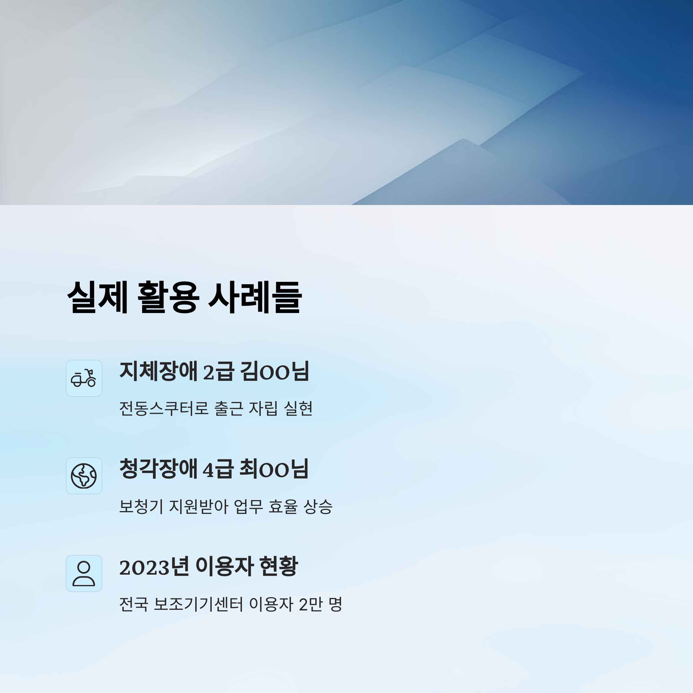 이런 이야기들은 실제로 얼마나 많은 사람들이 보조기기 덕분에 자립적인 삶을 살아가고 있는지를 보여줘요. 보조기기는 단순히 신체 보완이 아닌, ‘삶의 도구’라는 걸 알 수 있죠.