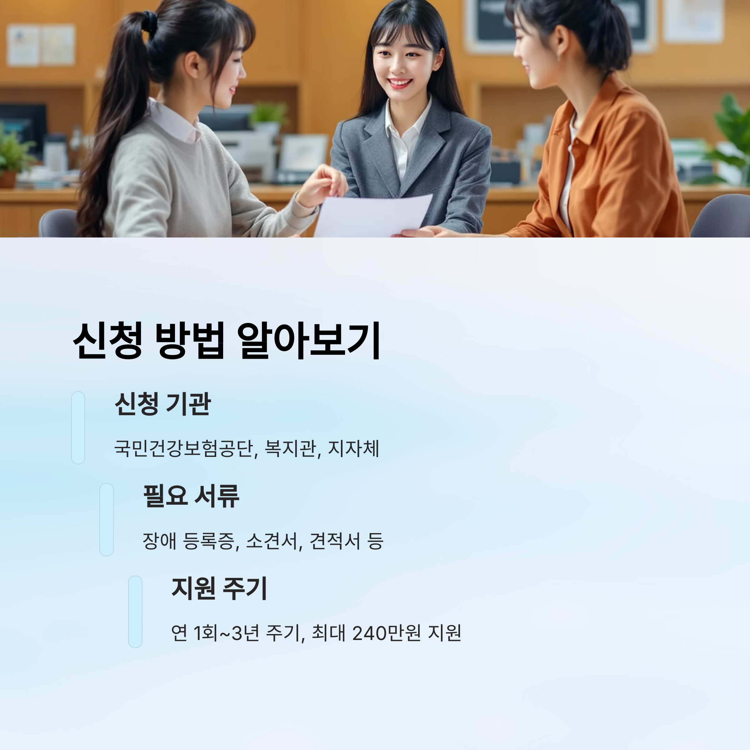 대표적인 경로는 주민센터, 복지관, 장애인종합지원센터예요. 이곳에서 기기 신청을 위한 상담부터 시작할 수 있어요. 온라인으로는 복지로(www.bokjiro.go.kr) 또는 국민연금공단 사이트를 통해 신청 정보도 확인할 수 있어요.