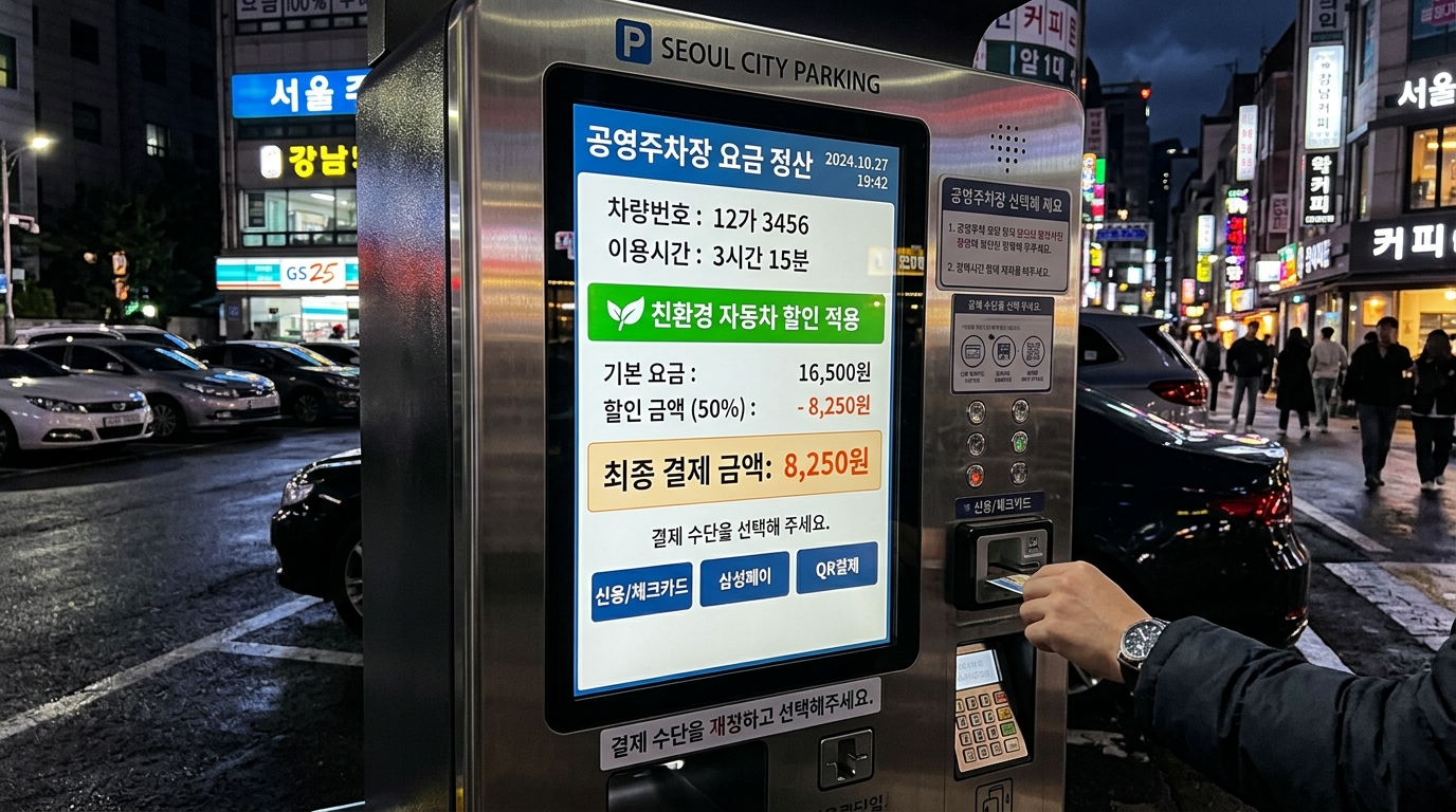 - 파란 번호판의 힘: 전기차 파란 번호판은 공영주차장 50% 자동 할인의 키입니다. 인식이 안 될 땐 꼭 '호출' 버튼을 누르세요.