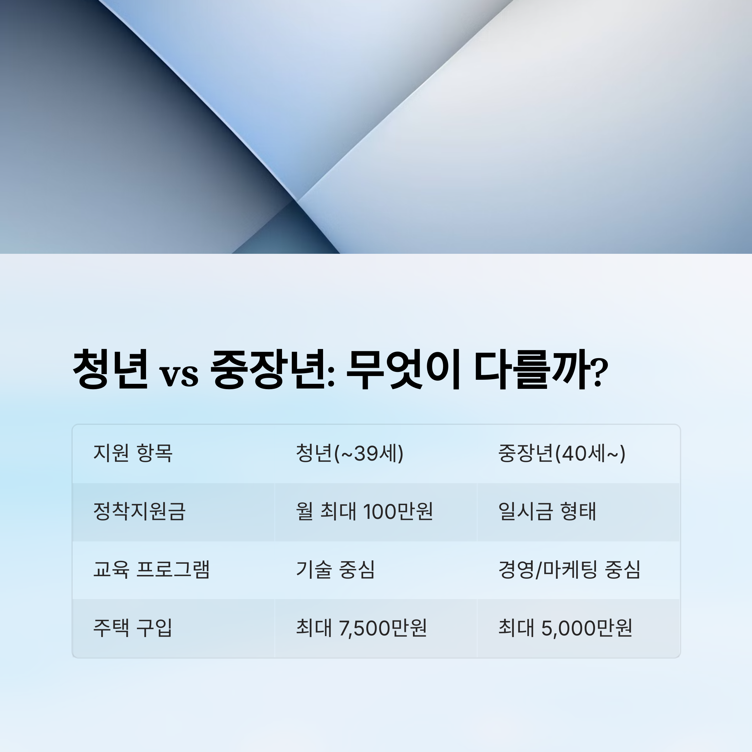 ⚖ 청년 vs 중장년 지원 비교 분석