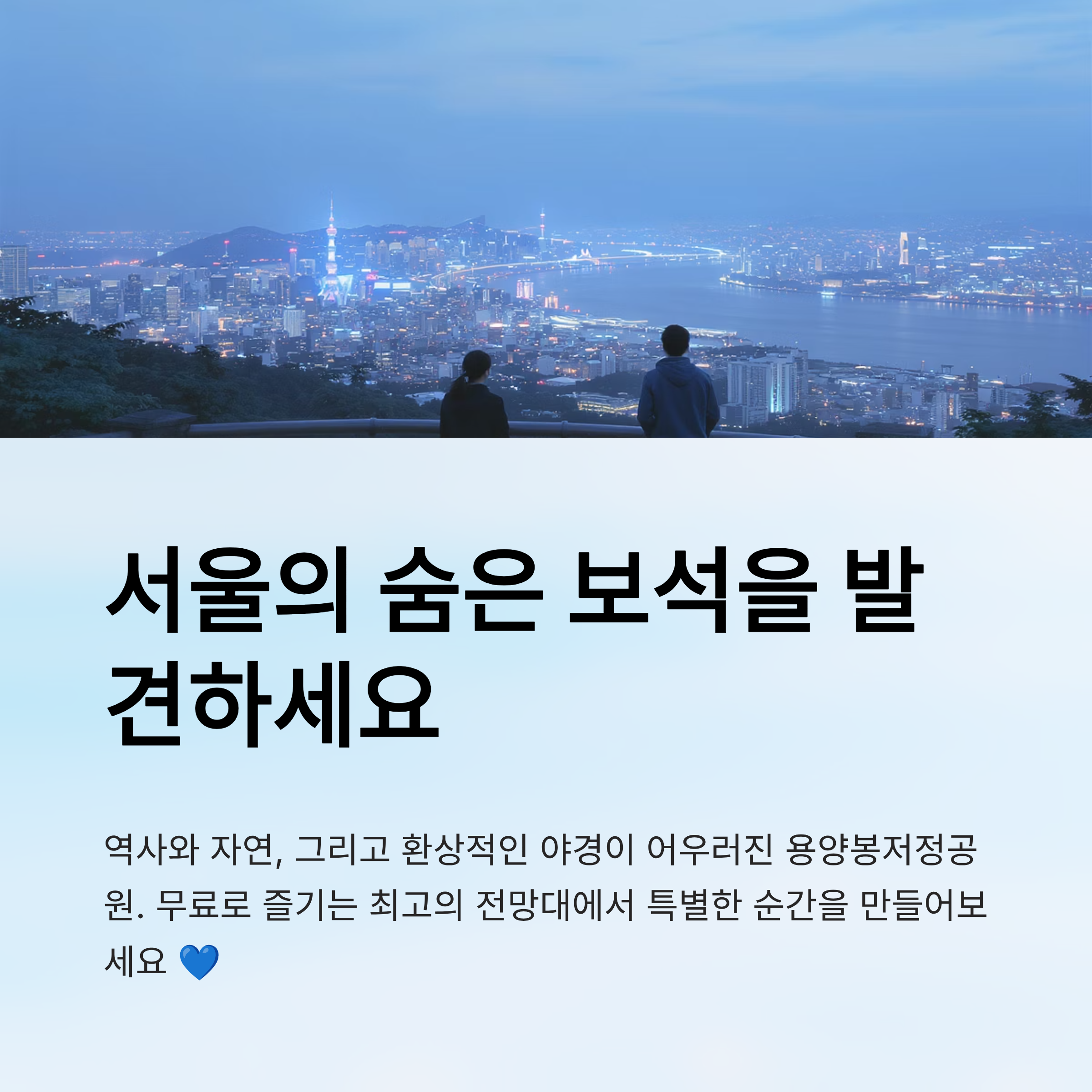 무엇보다 용양봉저정공원은 현지인들 사이에서 ‘숨은 전망대’로 불릴 만큼 조용하면서도 멋진 뷰를 자랑해요. 한강, 노들섬, 남산, 북한산까지 한눈에 담기는 파노라마 야경은 정말 끝판왕이에요. 지금부터 이 공원을 150% 즐기는 방법을 낱낱이 알려줄게요! 👀🌇