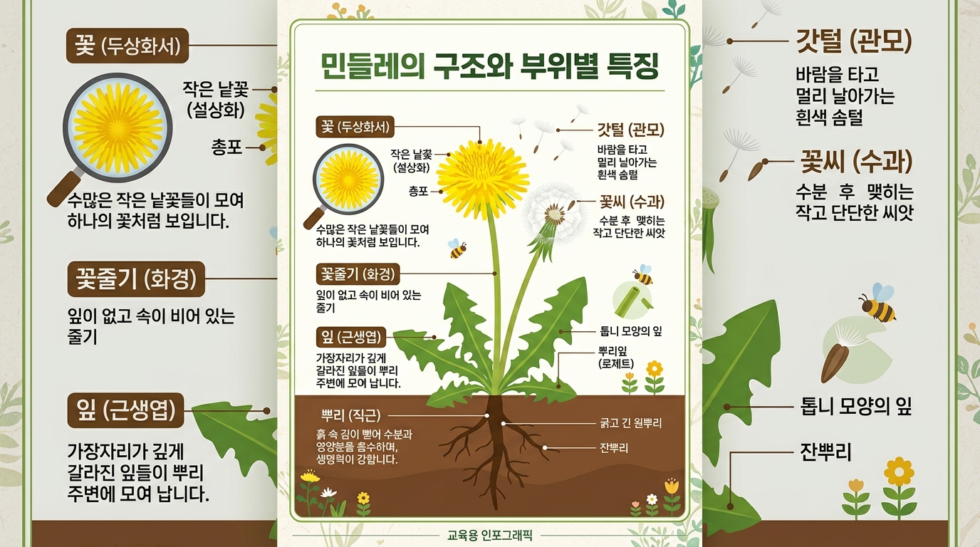 오늘 함께 알아본 민들레의 핵심 내용을 요약해 드립니다. 바쁘신 분들은 이 부분만 꼭 챙겨 보세요!