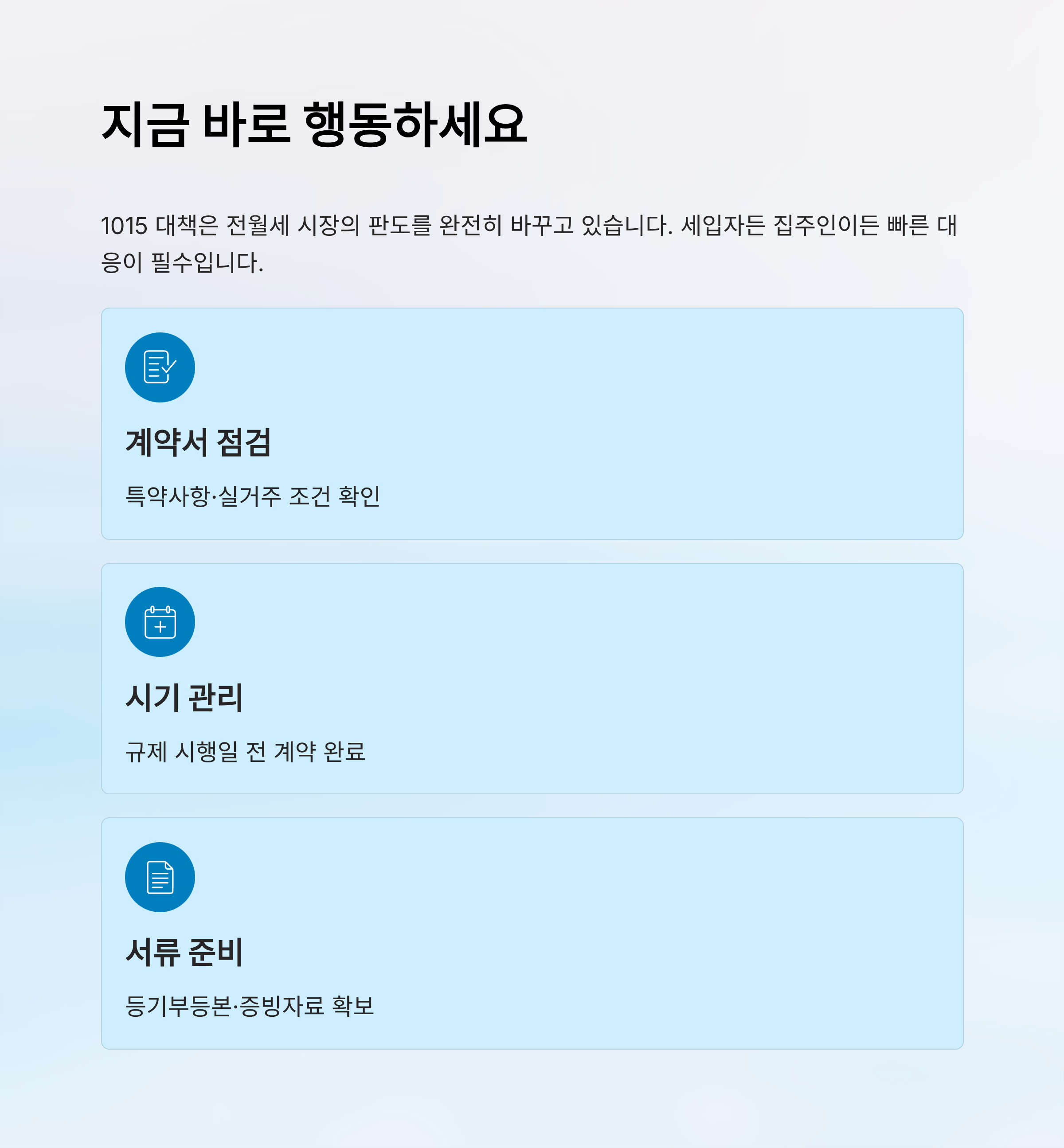 1015 대책 이후로 계약을 새로 체결하거나 갱신할 때는 그 어느 때보다 ‘날카로운 시선’이 필요해요. 특히 시행일 전후로 계약서를 작성하는 시점에 따라 규제가 적용되느냐 마느냐가 갈리기 때문에, 계약서 작성일과 계약금 납부일을 증명할 수 있는 서류를 반드시 준비해야 해요. 이는 단순히 날짜 싸움이 아니라 수천만 원, 심지어 억 단위로 결과가 달라질 수 있는 핵심 포인트예요.