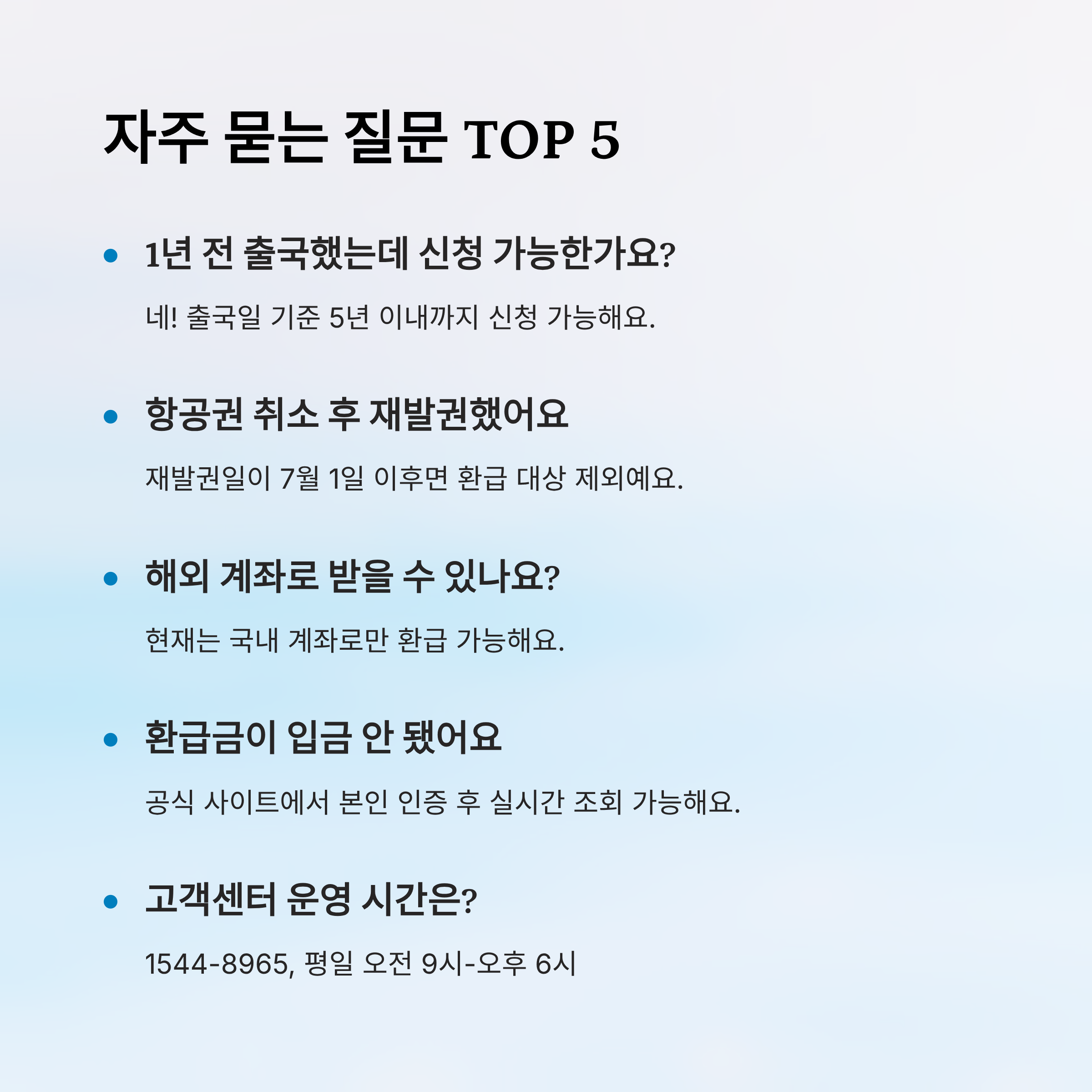 본 콘텐츠는 2025년 9월 기준의 공식 정보를 바탕으로 작성되었으며, 정부 정책 변경 및 사이트 운영 기준에 따라 달라질 수 있어요. 실제 환급 여부는 신청자의 상황, 서류의 정확성, 시스템 기준에 따라 다를 수 있습니다. 최신 정보는 반드시 공식 출국납부금 환급 사이트를 통해 확인해 주세요.
